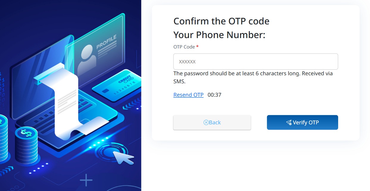 - Click "Verify OTP" to complete the verification step.